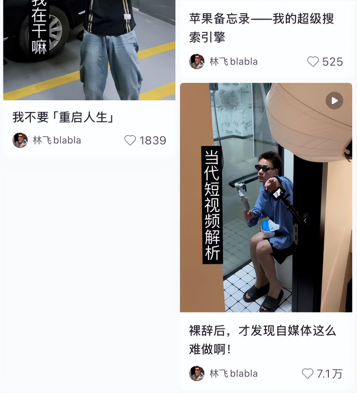 @林飞blabla 的感受是,上班的时候自己就是执行层,跟着老板规划走就行,做了账号以后所有的问题和选择都需要自己去负责,账号更新的内容、商业化,都需要自己花时间去探索,并且承担后果。